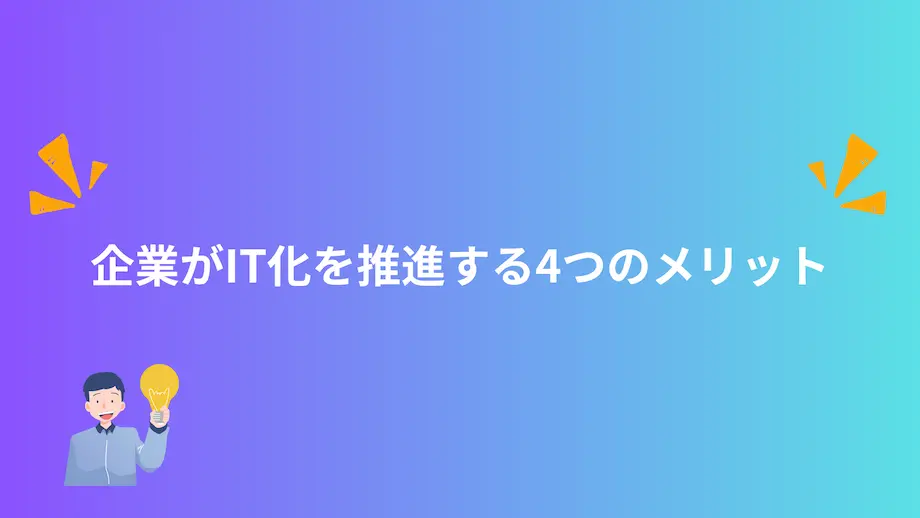 IT化の推進は、日々の業務を楽にするだけでなく、企業経営全体に多くの好影響をもたらします。ここでは、IT化によって得られる代表的な4つのメリットについて、具体的に解説します。これらのメリットを理解することで、社内での導入目的の共有や、投資対効果の説明がしやすくなります。
