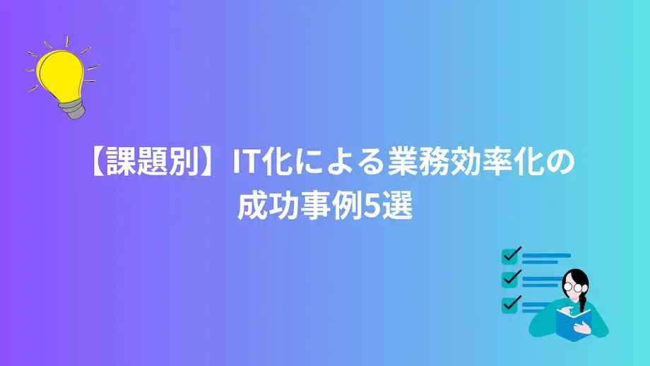 ここでは、実際に企業が抱える課題をIT化によってどのように解決したのか、具体的な成功事例を5つ紹介します。自社の状況と照らし合わせながら、ITツール導入後のイメージを膨らませてみてください。