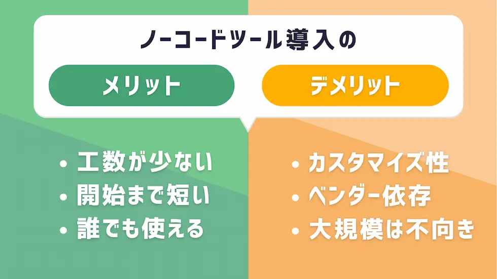 ノーコードツールは、専門的なプログラミング知識がなくてもアプリやWebサービスを構築できるなど、様々なメリットがありますが、注意すべきデメリットも存在します。