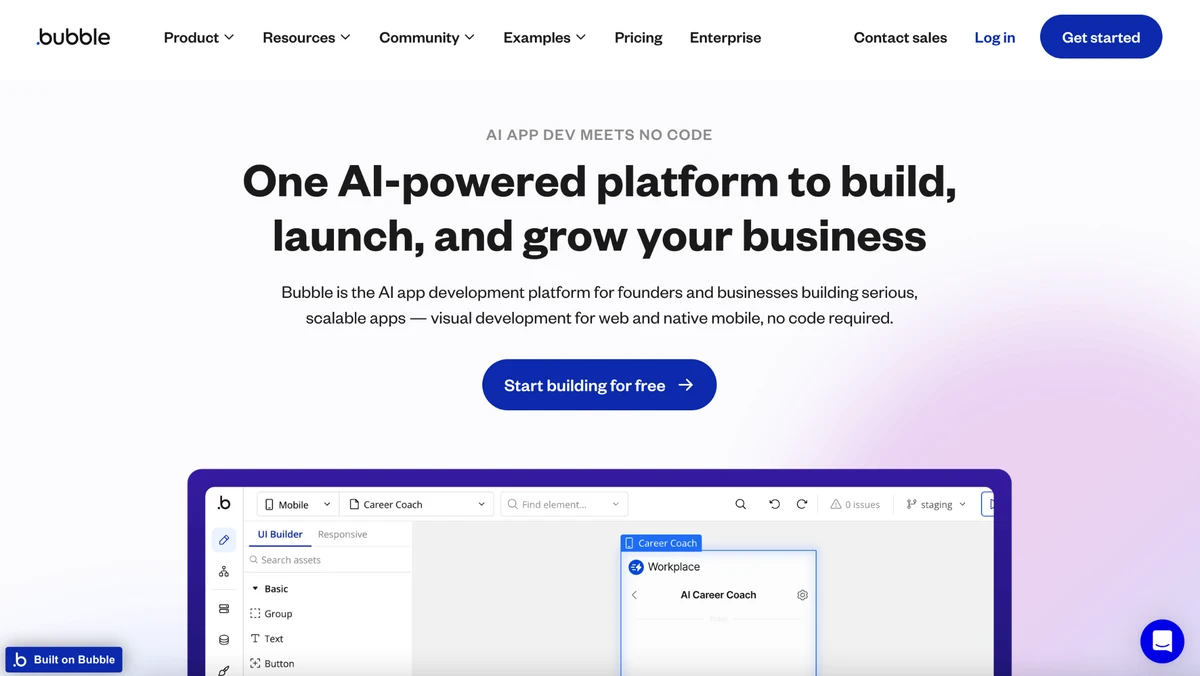 「Bubble」は、全世界で200万人以上が利用するWebアプリ開発に特化したノーコードツールです。プログラミング不要で複雑な機能も実装でき、ドラッグ&ドロップで直感的に操作でき、特にスタートアップや個人開発者から高い支持を得ています。
