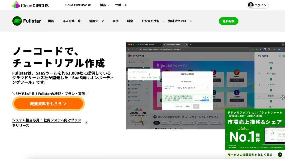 ノーコードでITツール上にガイドを設置できるツール「Fullstar(フルスタ)」です。