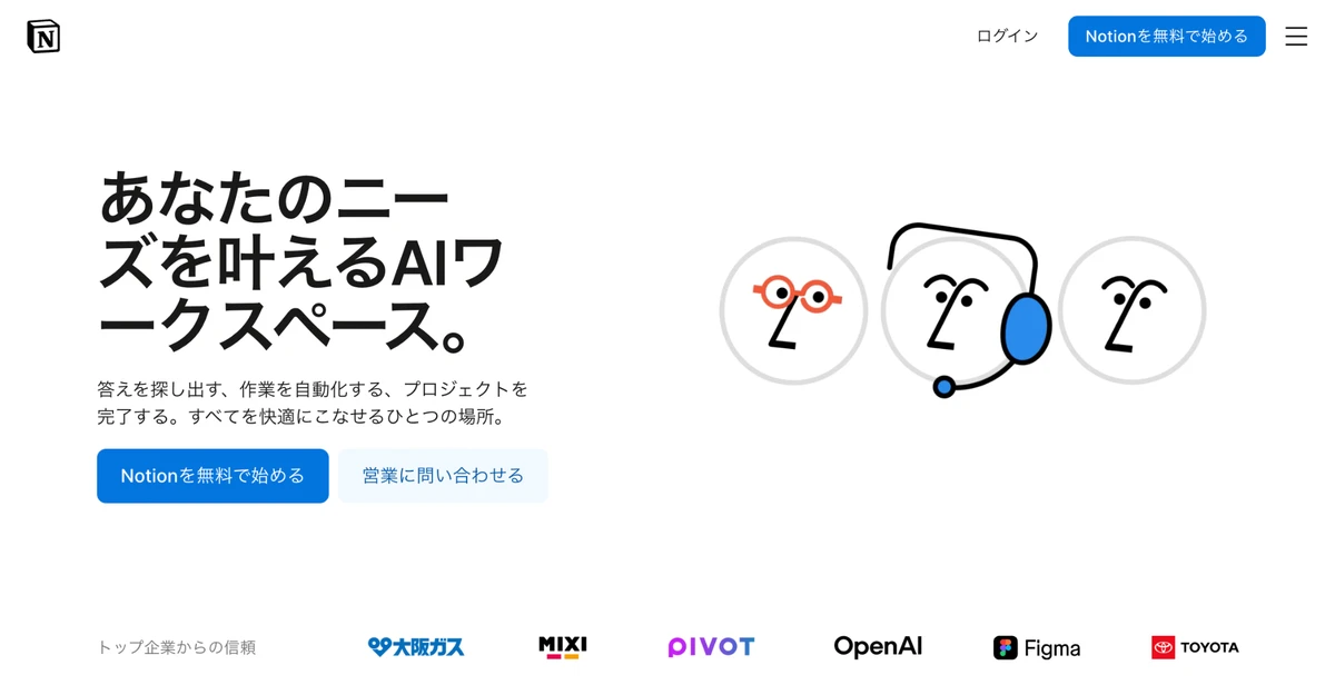 直感的な操作でページや情報を自由に構築でき、テンプレートや日本語対応により初心者でも使いやすいといったメリットがあります。また、個人の生産性向上はもちろん、チームでのプロジェクト管理や情報共有にも最適です。